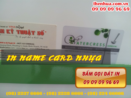 Name card là vật dụng không còn quá xa lạ đối với mỗi người. Là một doanh nhân, một nhà báo, một giám đốc, trưởng phòng… đều trang bị cho mình name card để giới thiệu bản thân mình. Một name card đẹp, chất lượng sẽ thể hiện sự chuyên nghiệp cho bạn. In name card nhựa trong suốt tạo sự mới lạ, độc đáo, ấn tượng.